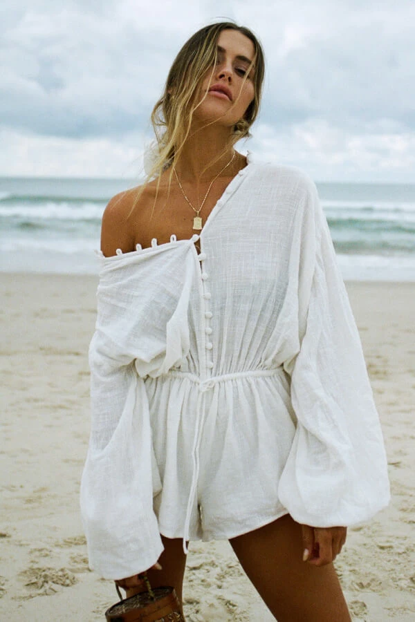 *THIS IS A SAMPLE* I am a one off Sabo sample of the Elsa Playsuit – White. I am a perfect XS sample. I cannot be returned, so I’m all yours to love and wear as your very own.
