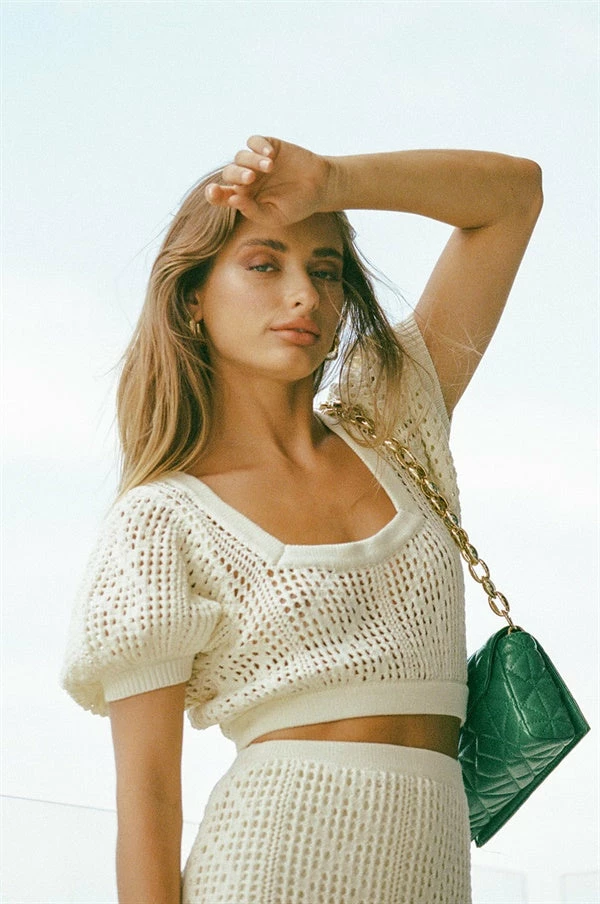 *THIS IS A SAMPLE* I am a one off Sabo sample of the Kimmi Knit Top. As I was used in a photo shoot, I have slight soiling on my inside left bust. I cannot be returned, so I’m all yours to love and wear as your very own.