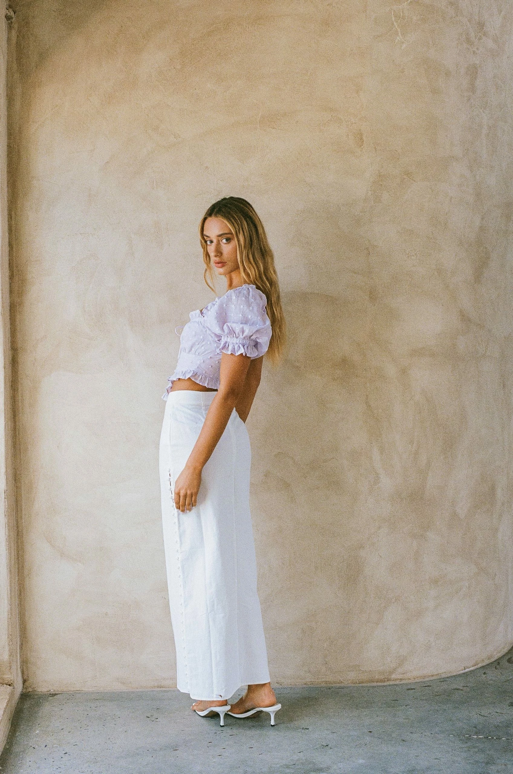 *THIS IS A SAMPLE* I am a one off Sabo Skirt sample of the Neila Puff Top. I have a small yellow mark on my front tie detail. I cannot be returned, so I’m all yours to love and wear as your very own.