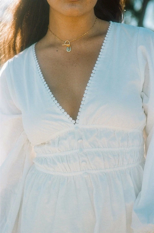 *THIS IS A SAMPLE* I am a one off Sabo sample of the Skylani Dress. I have a small brown dot above my left shoulder. I cannot be returned, so I’m all yours to love and wear as your very own.