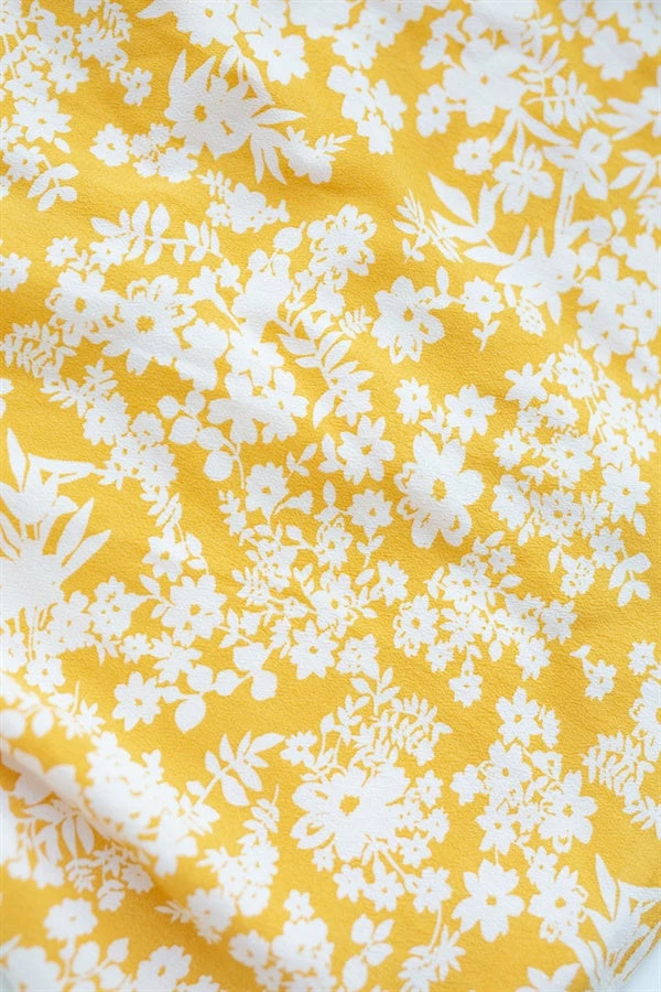 Dress it up with heels or keep it casual and layer with a tee! The Sarai Dress is made from a mustard zipper crepe fabric with a floral print throughout. It features a straight neckline, contrast bust and tie straps. Pair with the Jay Sunglasses and Net Bucket Bag! Exclusively designed by Sabo.