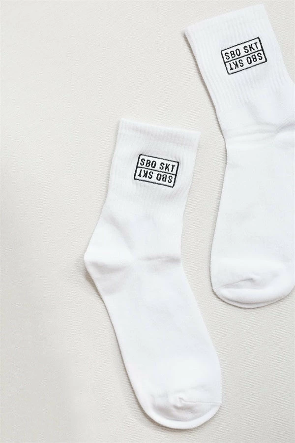 The perfect pair for your sneakers! The vintage-inspired SBO Crew Socks are made from a soft cotton fabric in fresh white. They feature a ribbed upper with SBO SKT embroidered patch detailing.