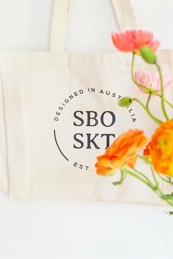 The perfect bag for weekend farmers markets! The SBO Market Tote Bag is made from a natural cream canvas and features long arm straps and black SBO SKT printed detailing. The perfect alternative to plastic bags!