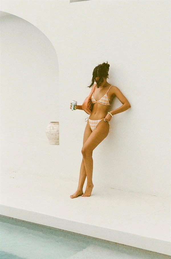 The Sebastian Tri Top is a classic tri style made from a textured seersucker fabric in multi gingham. It is fully lined and features string ties with with a flattering triangle top and a removable padding option. Cups can be adjusted coverage for a perfect fit! Exclusively designed by Sabo.