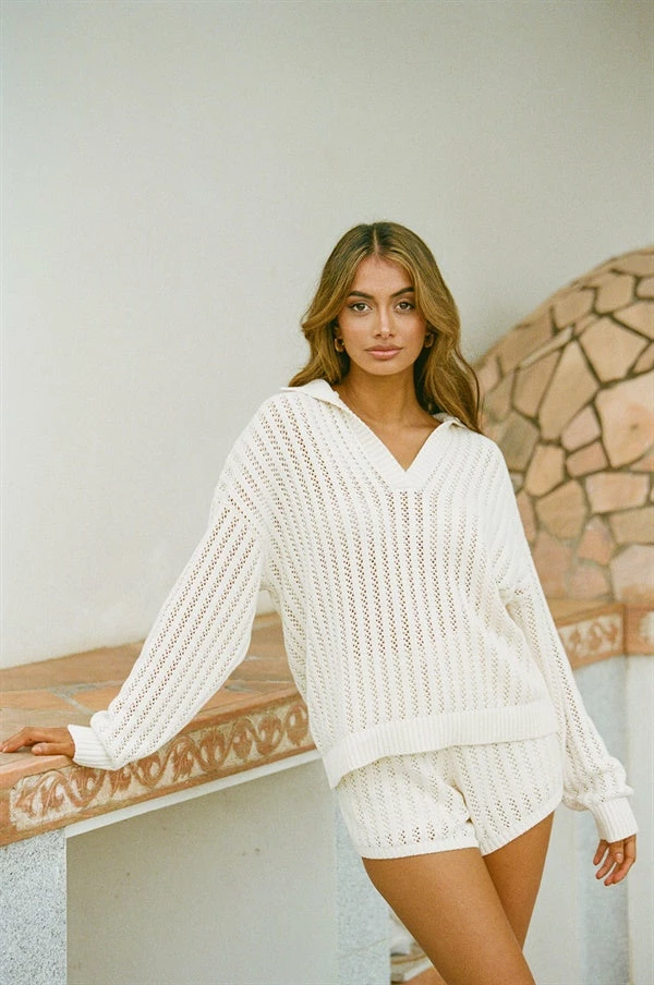 The perfect brunching set! The Sebby Shorts are made from a soft natural lace cotton knit in a cream hue. They are a micro high waisted style featuring an elasticated waist with drawstring, high-low hems and ribbed trim detailing. Pair with the Sebby Top and Crescent Bag! Designed exclusively by Sabo.
