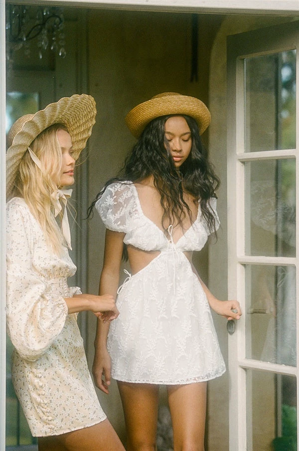 Inspired by florals in the Mediterranean, the Sephora Cutout Dress is made from a sheer organza fabric with fern embroidery throughout. It features short sheer puff sleeves, tie at centre bust, cutout at waist, low slung back and a flouncy skirt. Pair with gold accessories and heels for your next event! Designed exclusively by Sabo.