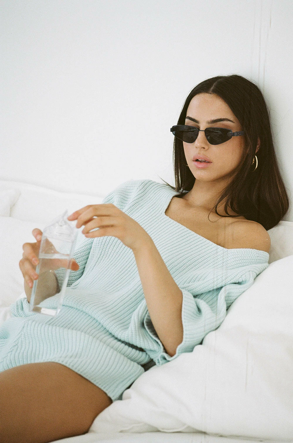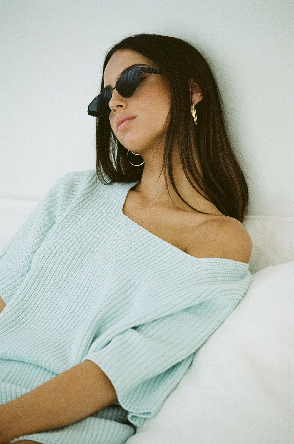 Obsessed with this neckline, the Sevina Knit Top is made from a soft knit in a blue hue. It features a square neckline, 1/2 length sleeves and a relaxed fit. Pair with the Sevina Knit Shorts and Crescent Bag! Designed exclusively by Sabo.