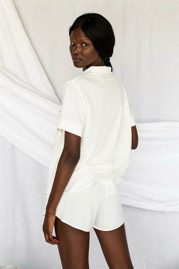 *THIS IS A FINAL SALE ITEM* Comfy and super cute! The Siesta PJ Shorts are made from a super soft pointelle jersey fabric in a light cream hue. They feature an elasticated waist with paperbag detailing, twin pockets, curved hems and slight splits at side. Pair with the Siesta PJ Top and Fluffy Slippers! Exclusively designed by Sabo.