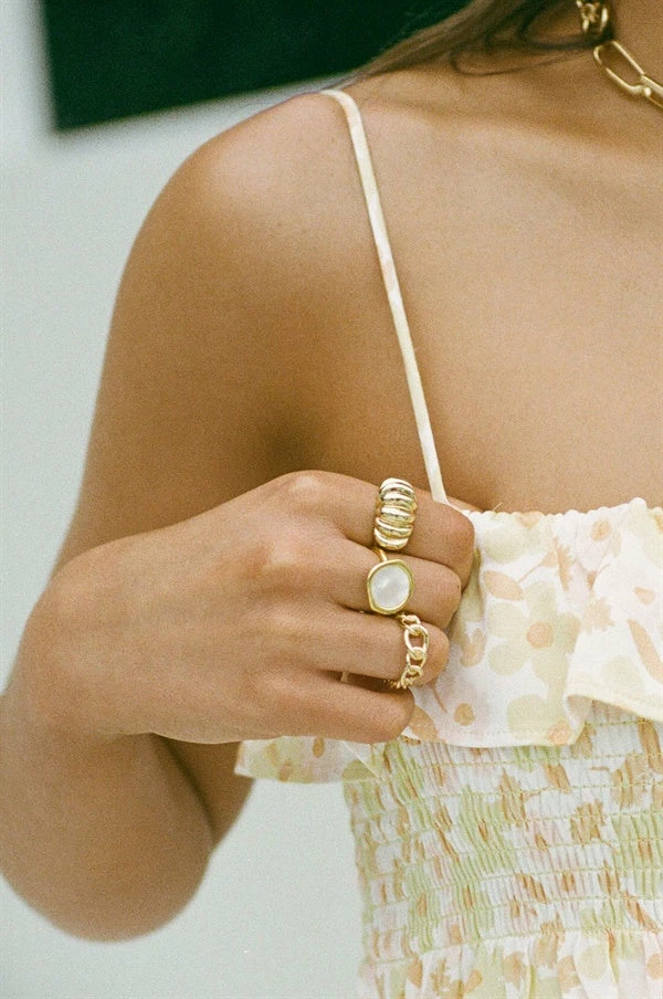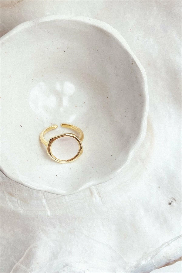 Accessorise in style! The Signet Gem Ring is gold toned and features a flat ivory centre base and imperfect edge detailing.