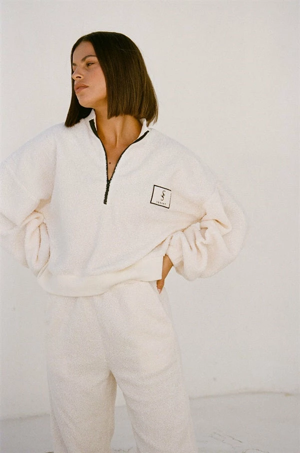 *THIS IS A FINAL SALE ITEM* Keep cosy in the Soft Kiri Pants, made from a super soft sherpa fabric in a cream hue. They are a high waisted style featuring an elasticated waist, twin pockets, tapered legs and elasticated cuffs. Pair with a basic tank and the Carmel Sweater! Exclusively designed by Sabo.