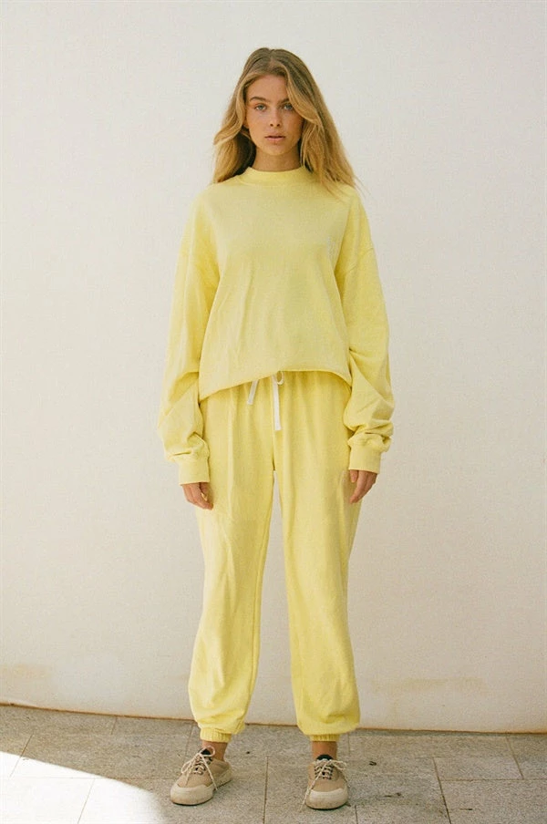*THIS IS A FINAL SALE ITEM* The perfect cosy basic as the weather cools down! The Sonny Sweater is made from a natural cotton terryback fabric in a yellow hue. It is a unisex style featuring a ribbed crew neck, full length sleeves, ribbed cuffs and waistband and white embroidered detailing. Complete your look with the Sonny Sweatpants and SBO SKT Crew Socks! Exclusively designed by Sabo.