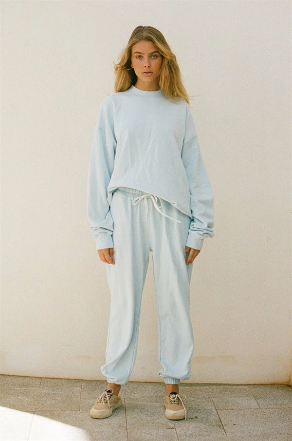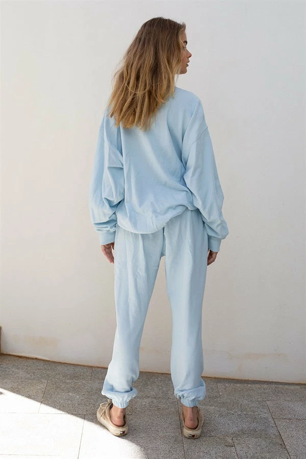 Straight from our Recreation Club collection, the super cosy Sonny Sweatpants are made from a natural cotton terryback fabric in a blue hue. They are a mid-high waist style featuring an elasticated waist with white drawstring, white SBO SKT embroidered detailing at side of leg, twin pockets, tapered legs and elasticated cuffs. Complete the look with the Mao Knit Top and Sonny Sweater! Exclusively designed by Sabo.
