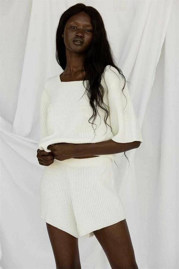 *THIS IS A FINAL SALE ITEM* Obsessed with this unique neckline, the Tarlo Ribbed Top is made from a soft knit in a cream hue. It features a square neckline, 1/2 length sleeves and a chilled relaxed fit. Pair with the Tarlo Ribbed Shorts and Rattan Backpack! Exclusively designed by Sabo.
