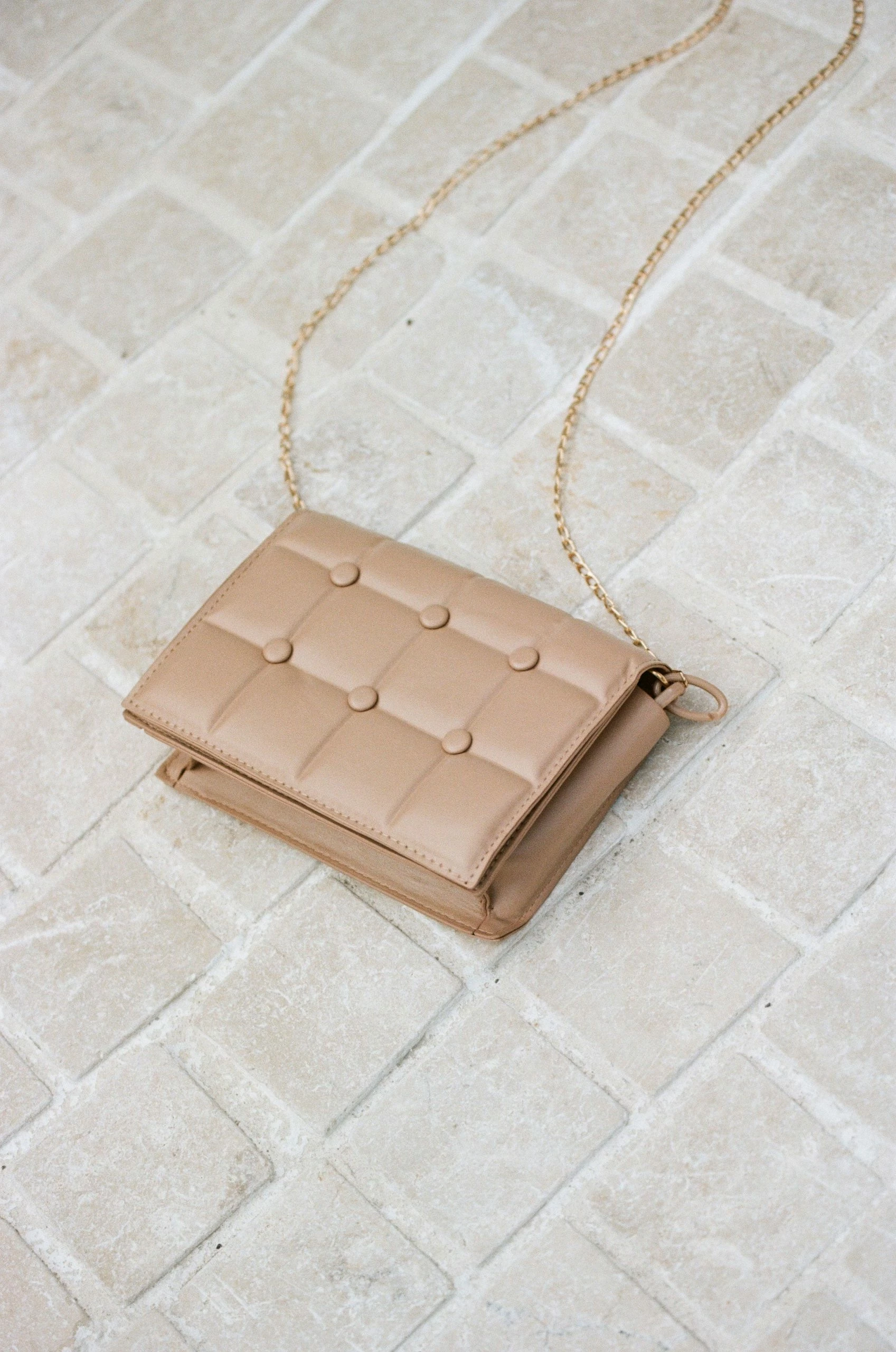 The perfect way to accessorise your look! The Tiana Bag is made from a vegan leather featuring a flap front with quilted detail. Includes gold or tan chain strap options!
