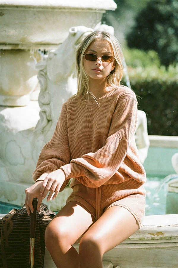 Our signature shape in an easy-to-wear colourway! The Toffee Knit Shorts are made from a soft natural cotton knit in a tan hue. They are a high waisted style featuring an elasticated waist with drawstring, ribbed waist and hem detailing and high-low hems. Get the look and pair with the Toffee Knit Top and Jera Sunglasses! Designed exclusively by Sabo.