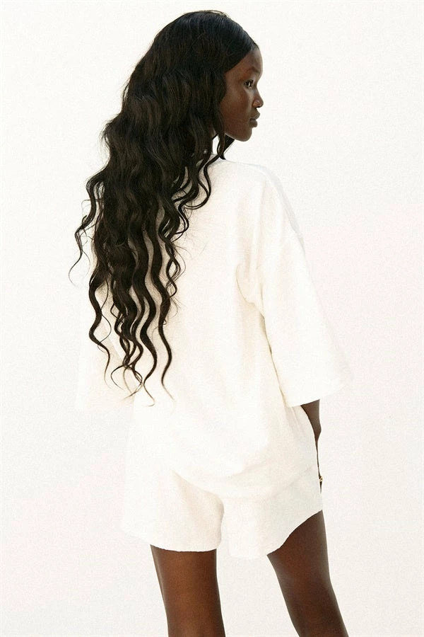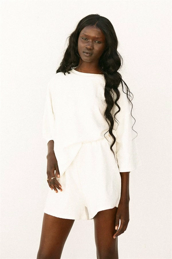 Your favourite basic style in a lush fabric! The Wanderer Shorts are made from a textured lightweight fabric in an off white hue. They are a high waisted style featuring an elasticated waist and high-low hems. Get the look and pair with the Wanderer Tee, white Rattan Backpack and Mira Slides! Exclusively designed by Sabo.