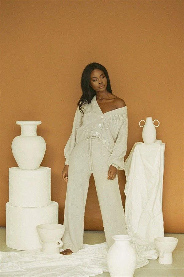*THIS IS A FINAL SALE ITEM* The super chic, resort style Zenith Pants are made from a knitted fabric in a grey hue. They are a high waisted style featuring an elasticated ribbed waist, drawstring and full length wide legs. Wear it as a set and pair with the Zenith Top or dress it down and pair with the Mao Knit Top! Designed exclusively by Sabo.