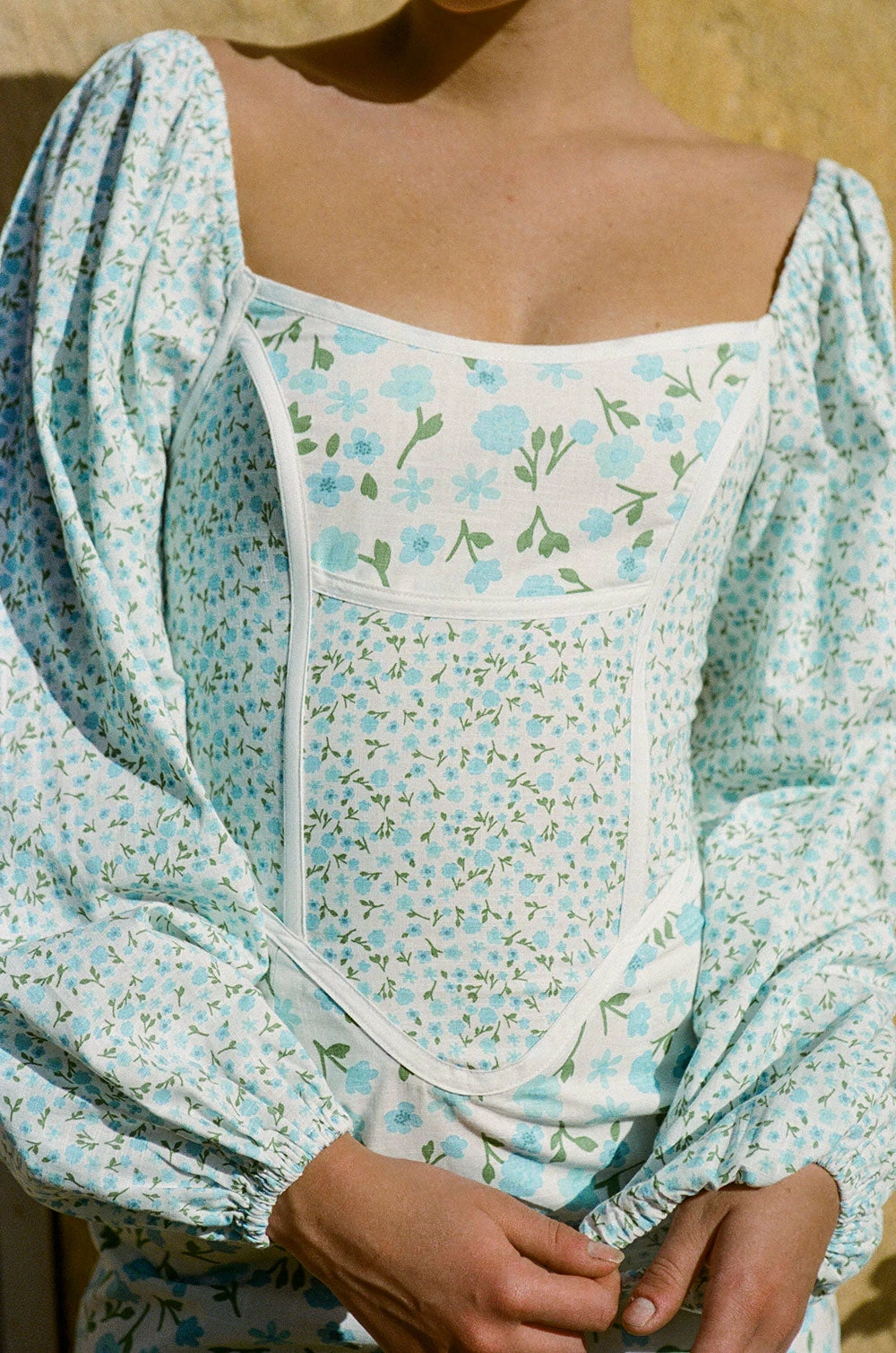Our contrast exclusive print is the perfect way to make a statement! The Zhar Dress is made from a high quality natural cotton fabric with our blue vintage floral print. It features bold puff sleeves, white contrast trim detailing and a flattering boned corset bodice. Styling tip: sleeves can be pushed up for a more dramatic look! Designed exclusively by Sabo.
