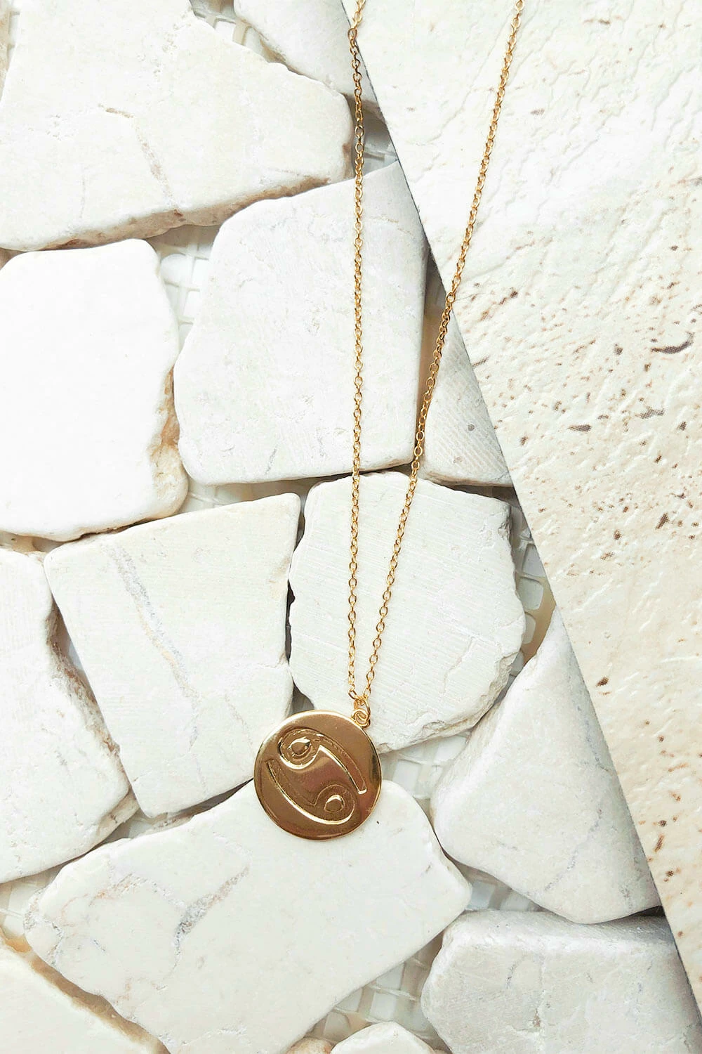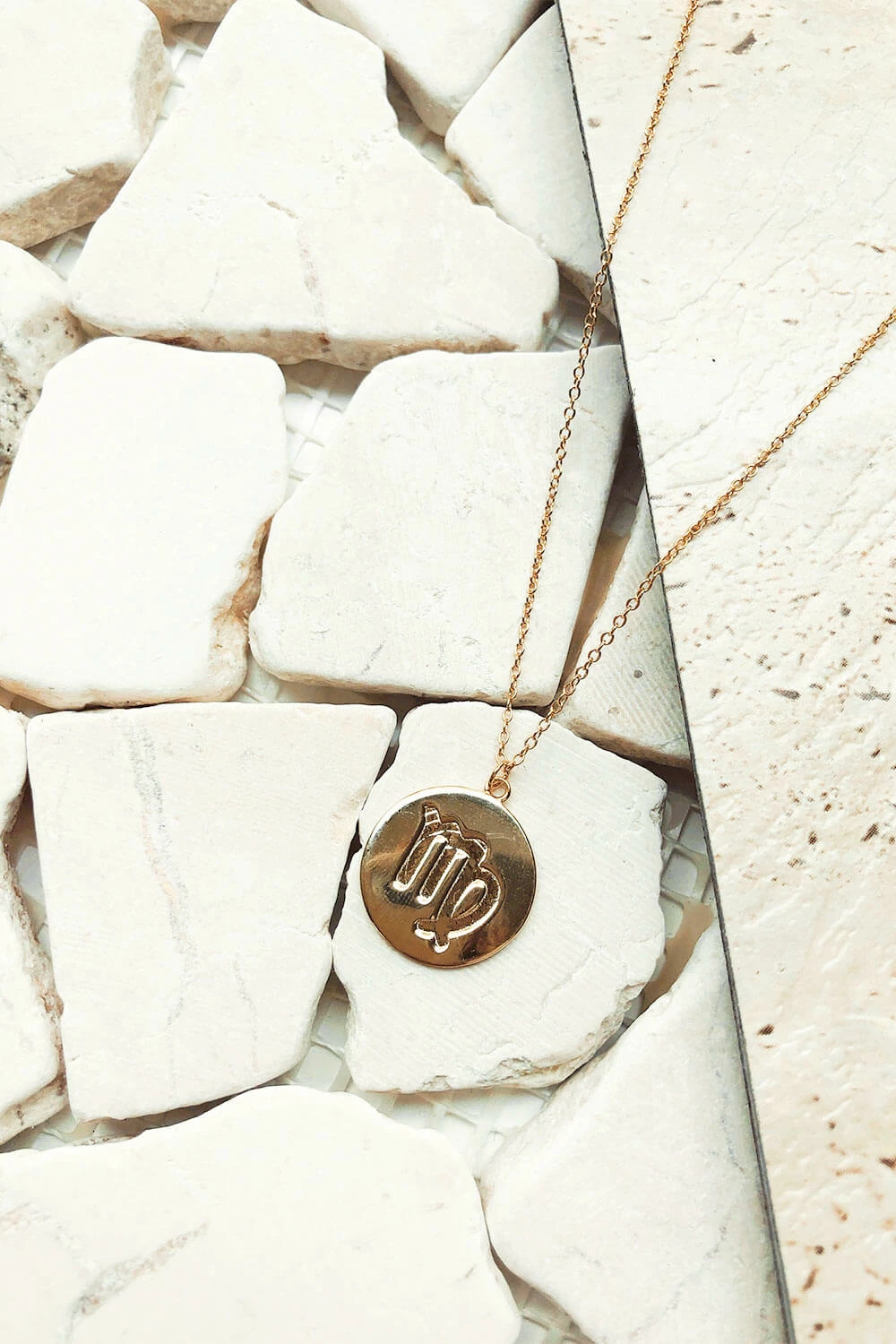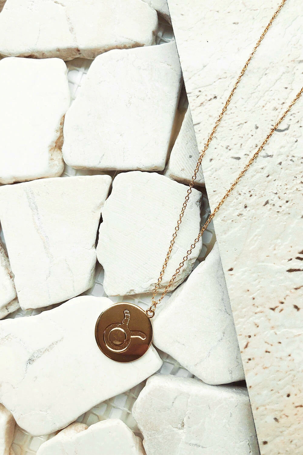 *THIS IS A FINAL SALE ITEM* The super cute and personalised Zodiac Necklace is gold toned and features a thin chain and a round pendant with Zodiac sign detailing. Perfect addition to any outfit!