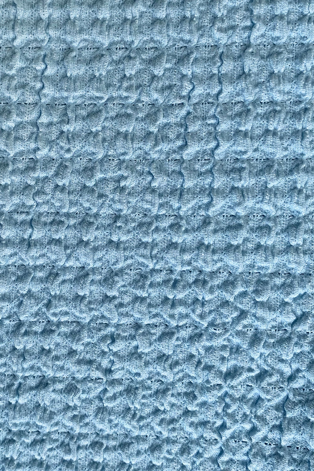 Wear it as a set or pair with your favourite denim bottoms! The Zura Top is a cropped style made from a textured bubble fabric in a sky blue hue featuring a slight V neckline, V hem and elastic panel and tie closure at back. Get the look with the Zura Midi Skirt and Strappy Asteria Heels! Designed exclusively by Sabo.